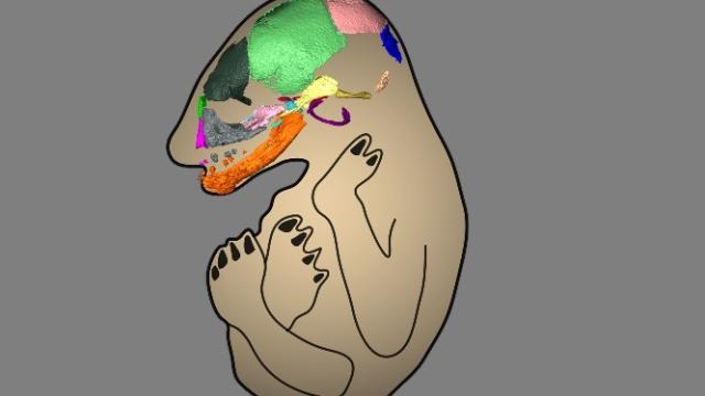 Bats are known for their ability of laryngeal echolocation producing of high-frequency pulses from their larynx and interpreting returning echoes to track their prey and avoid obstacles in the night sky. The evolution of laryngeal echolocation within bats remains unclear. Two hypotheses emerged: (1) laryngeal echolocation evolved in the common ancestor of all bats and was then lost in pteropodids, and (2) laryngeal echolocation convergently evolved in both rhinolophoids and yangochiropterans. In his PhD thesis, Yannick is integrating evolutionary and developmental approaches to provide additional evidence to clarify this question. Craniofacial development was investigated across the three major groups of bats and compared with non-bat mammals. Series of foetal samples were 3D scanned and individual cranial elements were 3D segmented using the software Amira. After focusing his research on growth rate of the upper jaw complex, Yannick studied the ontogenetic trajectory of the whole cranium extracting volumetric data from the 3D surface models. Growth rate slopes were used as raw data in principal component analysis. Ancestral state of cranial growth rate was reconstructed to trace heterochronic shifts within bat phylogeny. Yangochiropterans exhibit a faster cranial growth rate, especially on the craniofacial region, than both pteropodids and rhinolophoids. These results illustrate different cranial developmental strategies between both laryngeally echolocating yangochiropterans and rhinolophoids supporting the convergent evolution scenario. Landmarks were also applied on foetal crania to compare ontogenetic allometry within bats and highlight which cranial regions differentiate between bat major groups during the prenatal period. This project will reinforce our knowledge concerning the origins of laryngeal echolocation in bats and cranial development in mammals.